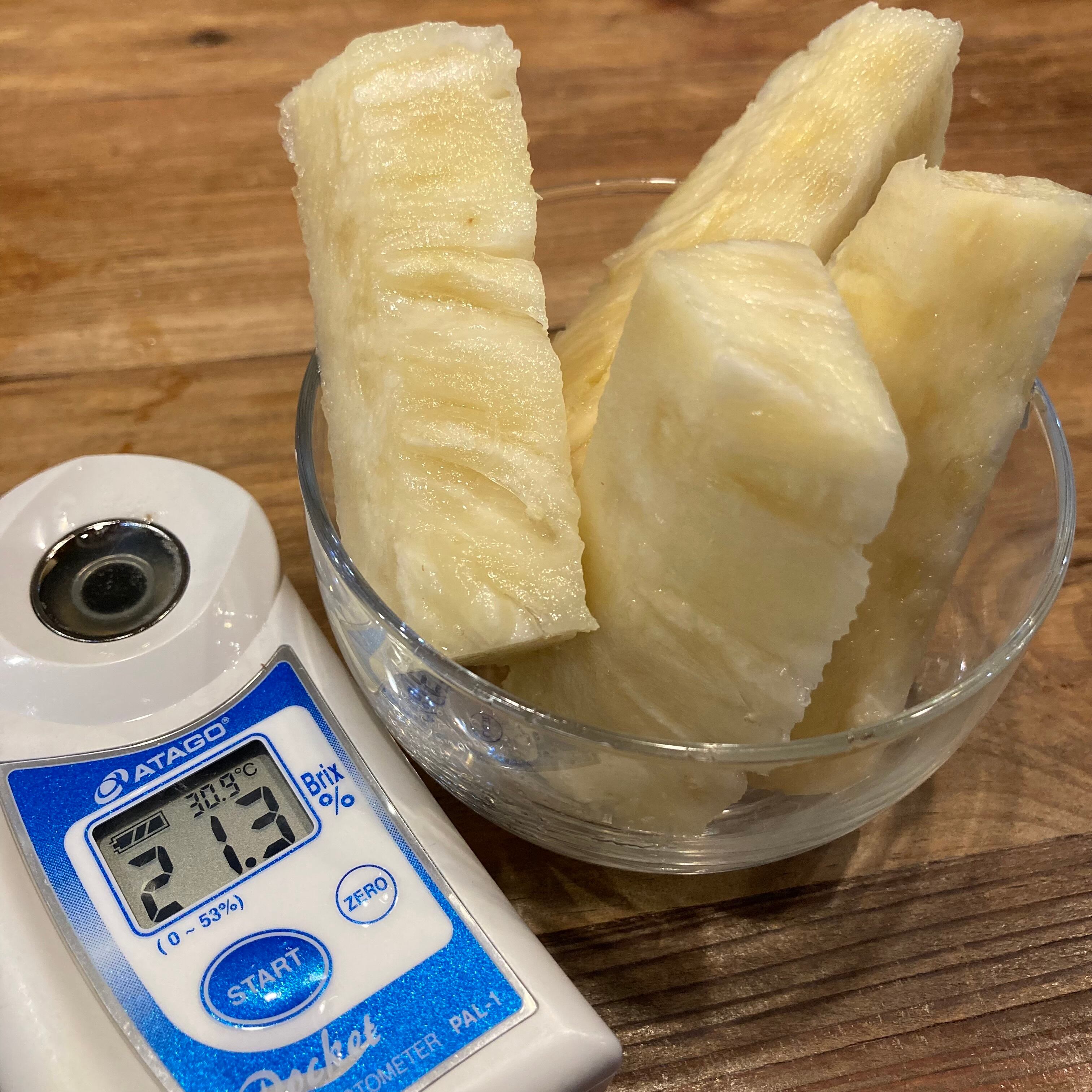 沖縄本島でもほとんど栽培されていない非常にデリケートな品種。元イタリアンシェフの農園主が、単なる糖度だけでなく、ピーチパイン特有の「香りの立ち方」と「味の調和」を見極め、ベストな状態で収穫します。